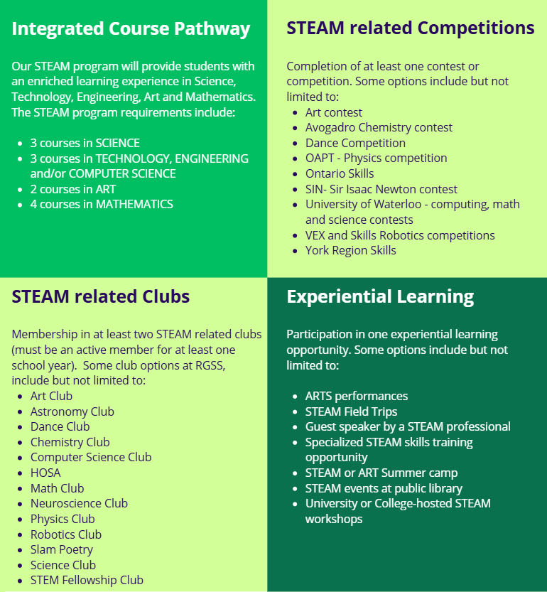 Richmond Green SS’s STEAM program will provide students with an enriched learning experience in Science, Technology, Engineering, Art and Mathematics.